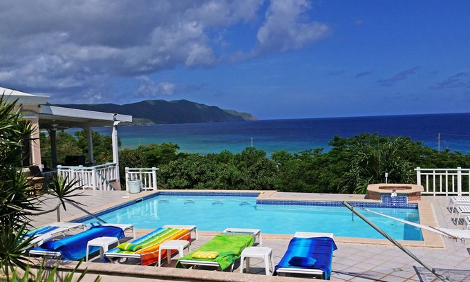 The views from inside this extraordinary, St. Croix, vacation home, from the front covered veranda and from the pool deck are spectacular! The large pool has four stools in the water where you can sit and enjoy the view and the fountain that flows into the pool. Villa Dawn has central air conditioning and is outfitted with tropical designer furnishings and every conceivable amenity. There is world-class SCUBA diving at the Cane Bay 'Wall' right in front of Villa Dawn, many nearby attractions and a championship golf course is just a ten minute drive from this dazzling vacation home. Our caretaker of the property lives nearby and is available 24/7 for any and all of your needs. If you are looking for a special vacation rental with that extra touch of luxury in a stunning location that can't be beat, then Villa Dawn is definitely your choice!