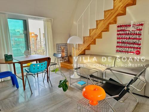Villa de Soang is located in Seoul, just a 16-minute walk from Hongik University and one mile from Hongik University Station. This apartment provides free private parking, private check-in and check-out, and free Wifi. Outdoor seating is also available at the apartment. Providing a terrace and garden views, the spacious apartment includes 2 bedrooms, a living room, flat-screen TV, an equipped kitchen, and 2 bathrooms with a walk-in shower. Towels and bed linen are provided in the apartment. For added privacy, the accommodation has a private entrance and soundproofing. Ewha Women’s University is 2.5 miles from Villa de Soang, while Yeongdeungpo Station is 3.5 miles away. Gimpo International Airport is 6.8 miles from the property.