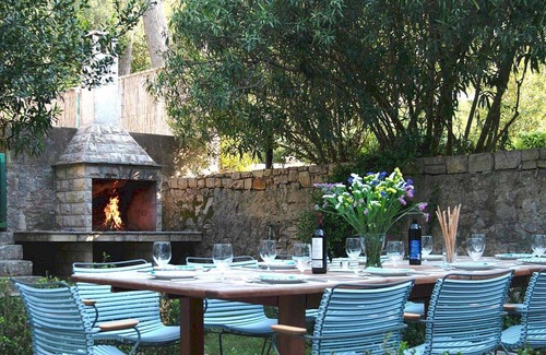 A few details about the really dreamlike beautiful and luxurious equipment of the listed villa. The living space is generously divided into 3 floors. On the ground floor there is a state-of-the-art kitchen with an open dining area. The color combination of the kitchen in white with earth colors is extremely successful and fits perfectly to the old visible brickwork and the modern design of the furniture like the colored bar stools at the modern cooking island or the atypical chandelier in wire optics. The full equipment offers the accustomed comfort: ceramic hob, oven, dishwasher, refrigerator with freezer compartment, pots, pans, complete dining and breakfast service, cutlery for 10 persons, espresso machine with capsule system. On the same level is the small wellness area consisting of fitness room, sauna and separate shower area. An open gallery leads to the living area on the upper floor. The dark wooden floor harmonises perfectly with the quarrystone masonry, so the puristic design of the grey furniture is particularly effective. The TV lounge is waiting for us at Chillig. The Master Bedroom with air conditioning and en-suite luxury bathroom offers a super sea view. The remaining 4 air-conditioned and no less well equipped double rooms share two comfortably equipped bathrooms. Some of the bedrooms have balconies with a great view of the harbour. After the wellness you can refresh yourself in the private pool of the house, which is surrounded by a sun terrace with comfortable deckchairs. The pool is protected by high trees. In the Mediterranean courtyard of the villa there is a traditional grill for a relaxed BBQ for the whole group.
