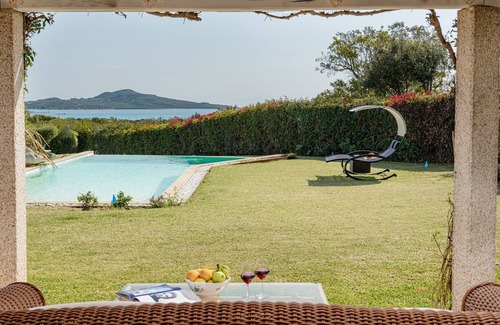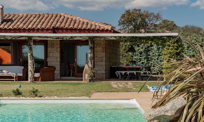 Wonderful Villa Eleonora is located above the Sardinian sea with breathtaking views towards Capo Coda Cavallo and Isola Ruia, just a few kilometres from San Teodoro, a sunny Gallura borgo of flowering streets overlooking the crystal-clear turquoise sea and its splendid beaches that stretch along a coastline of over 35 km. A high-class residence clad externally in typical Sardinian granite. The spacious interior, consisting of three adjoining units, is a riot of light, enhanced by the large windows of the living area and the panoramic bedrooms with their private bathrooms. The luxuriant garden, enclosed by a hedge, is surrounded by olive trees, Mediterranean vegetation, palm trees and natural rocks with succulent plants; under the large portico is a wonderful dining area. A few metres away is the stupendous, irregular-shaped infinity pool which offers its guests a splendid view of the sea. Villa Eleonora, built in 2006, is located in a very quiet residential area and, thanks to its large garden, complete privacy and relaxation are guaranteed. In this paradisiacal place the main attractions are certainly its fantastic beaches such as Lu Impostu, 2 km away, La Cinta, 6 km away and Cala Brandinchi, 4 km away. The location of the property allows you to easily reach San Teodoro which is 8 km away (with all kinds of shops and restaurants).