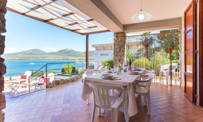 Here you will forget everything and the sea will be your companion. Our Villa facing the sea, in the heart of the Porto Conte di Alghero park, overlooks the bay of the water lilies. The colors of the sea and vegetation are incredible, and the scent and noise of the undertow will lull your nights. With 3 large bedrooms the villa can accommodate up to 6/7 people. Inside the property there is a large living room overlooking the sea, a new kitchen equipped with all appliances and a large veranda, partly covered and shaded, with a direct view of the sea; 3 double bedrooms; 2 bathrooms with shower; large garden, 2 parking spaces. The villa is equipped with all the main comforts to spend a pleasant stay: outdoor shower, outdoor table and chairs, sun loungers, barbecue, oven, TV, radio. The apartment is close to the sea and the marina, with bar and restaurant. Ideal for those who really want to unplug and spend moments of absolute relaxation, lulled into the house, by the lapping of the waves. Behind the villa there is the town of Maristella, where there is a market, tobacconist's, fresh bread, and all the main services. Below the house, the tourist harbor offers bar and restaurant service. The beach can be reached on foot. Dinghies can be rented from the small port under the house to discover the coast of Capocaccia. The courses for scuba diving and diving courses also start in the marina.