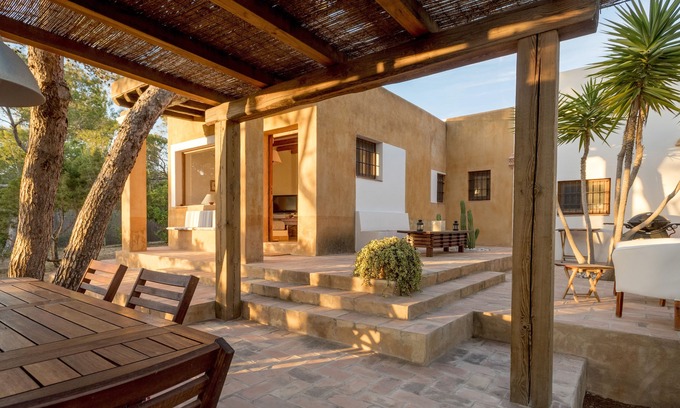 Typical Ibicencan house, located in the middle of a forest of junipers and pines, consists of two bedrooms, one double and one at two heights suite. Two bathrooms with shower.