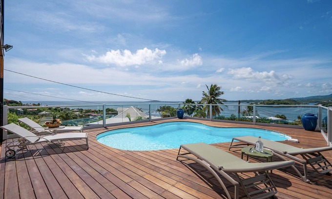 Dreaming of a Martinique getaway combining comfort, privacy and breathtaking views? This low-rise villa on the Atlantic coast, in a peaceful setting in the heart of nature, invites you to relax. Panoramic views over the white seabed, a swimming pool facing the islets, and a friendly atmosphere: everything you need for a successful vacation.