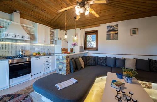 The interior is completely furnished with handmade wooden furniture with fireplace in the living room. This stone house, which can be easily accommodated by 3 people, is completely independent of other houses and is suitable for small families. For more information contact us please