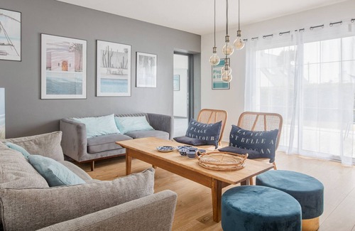 Nestled on the Atlantic coast, this elegant, bright and well-kept house with its private swimming pool (June 2022) and jacuzzi offers privileged access to kilometers of sandy beaches and turquoise waters. Located 100m from Kerurus beach via direct coastal access to the GR34, close to the sand yachting, kit surf and windsurfing center.