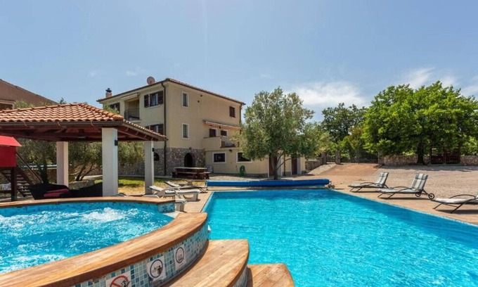 Enjoy a truly relaxing vacation at Villa Grande Island Krk in the village of Sveti Vid Dobrinjski on the island of Krk. This spacious villa is a great choice for a vacation with a group of friends or several families, as it has 6 bedrooms and can accommodate up to 12 people. Spend your time at the villa relaxing in the large garden, swimming in the heated pool and enjoying the Finnish sauna. Feel free to bring your pets on vacation and let them explore the villa's fenced garden.