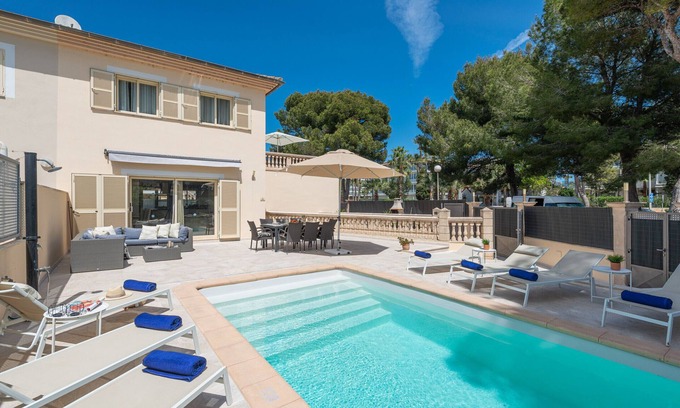 Discover this impressive holiday home in Playa de Muro, Mallorca! With 5 bedrooms and space for up to 8 people, this spacious 241 m² residence is ideal for families or groups of friends looking to spend unforgettable vacations on the Mediterranean coast.The outdoor area is simply spectacular, with a fantastic view and a large terrace, perfect for outdoor activities, surrounded by lush vegetation. The highlight is the 6.5 x 3.3 m pool, ideal for cooling off on warm days, as well as comfortable loungers for sunbathing and relaxing. Additionally, there is a charming stone grill available for outdoor dinners.Upon entering this beautiful property, you will be greeted by spacious and light-filled spaces that perfectly merge with an impressive view of the garden and private pool. Imagine waking up each morning and enjoying your coffee at the terrace table while contemplating the serene landscape surrounding you.The living room and dining room, fully equipped, includes a sofa, satellite TV, and more. The kitchen, also fully equipped, is ready to satisfy all your culinary needs. The bedrooms, two with double beds and the others with two single beds each, offer a comfortable and welcoming space. One of the rooms has its own bathroom for greater privacy, and the house has three additional bathrooms for greater convenience.The luxurious details of the property allow you to fully enjoy nature, from the hammocks with a view of Playa de Muro beach to the spacious terraces. The location is unbeatable, just 200 meters from the sandy beach of Playa de Muro and very close to the Playa de Muro, Albufera natural park.For those seeking additional excitement, the Puerto de Alcudia water park, Hidropark, is just 5 km away, and the city of Alcudia, 7 km away, offers history, culture, and entertainment. Back at the house, you will find everything you need for a comfortable and relaxed stay, from garden furniture to a fully equipped kitchen and WiFi internet access. In summary, this vacation house in Playa de Muro offers the perfect balance between comfort, location, and modern amenities. Book now for an unforgettable vacation on the beautiful island of Mallorca!Small dogs on request: 50€ per stayPool heating on demand: 35€ per dayFrom July to September 15th, the pool is not heated.The tourist tax/stay fee and the deposit are not included in the price. They must be paid in cash upon arrival.ETV/10637ESFCTU0000070110008200340000000000000000000ETV/106373