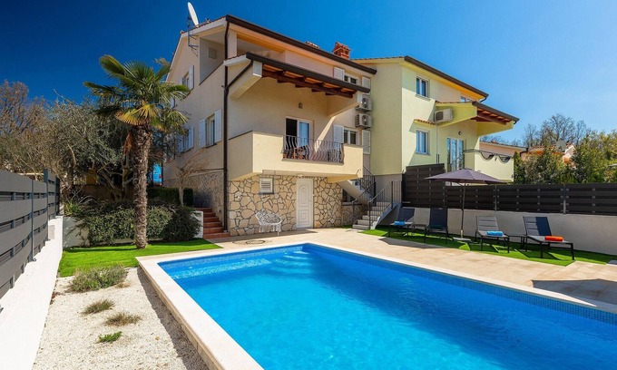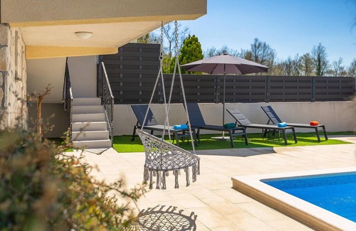 Villa Holiday Home Sabine is a family holiday villa with pool for a total of 8 guests in the western part of Istria, in Vinjan. If you are looking for a peaceful holiday with your loved ones in a stunning region, Villa Holiday Home Sabine might just be the place for you. The charming villa offers four bedrooms and two bathrooms on two floors. The outdoor area of the villa has a private swimming pool and sun loungers where you can relax with a book or a refreshing drink while enjoying the beautiful nature that surrounds the villa. Prepare delicious meals on the charcoal barbecue and enjoy them with your family and friends in the covered outdoor dining area while the kids have fun in the pool until late at night.