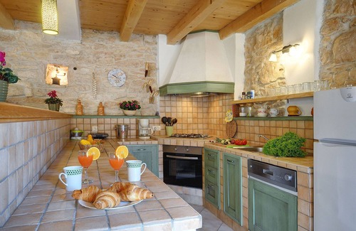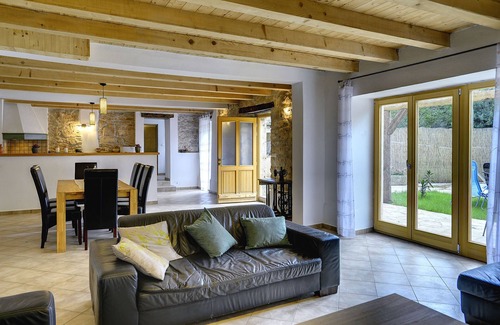 End of terrace house, villa Katarina in Batlug, near the town of Žminj, spreads over two floors and is surrounded by a beautiful stone wall. Since the villa Katarina is located in the central Istria, away from the sea, if you want to freshen up, you can do it in the pool, which is located in the garden, to which you have direct access from the living room. This villa in Batlug is ideal for families with children.
