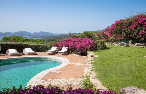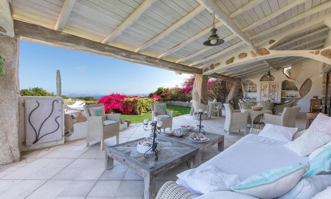 Villa with a swimming pool and a breathtaking sea view facing the Bay of Cala di Volpe. Can comfortably accomodate up to 16 guests. The quiet and picturesque location very close to the most famous beaches of Costa Smeralda and the Pevero Golf Club. A perfect place to spend an unforgettable vacation with the family and/ or a big group of friends. Apart from the magnificent sea view, you will fall in love with the particular design of the villa. It reflects the Sardinian history and combines the style of a typical stazzu of Gallura region represented by the massive doors made of aged wood with elements of wrought iron and pieces of works of a local talented artisan such as, for example, a metal fence in Gaudi style on the roof terrace. The outdoor spaces which are lived the most have everything a group of people might need during a summer vacation. Big swimming pool with sun beds, barbecue area, very spacious covered terrace on the roof with a sea view for aperitifs. Covered terrace in front of the house for dining all'aperto. All the entertainments are 5 minutes drive; i.e. supermarket, boutiques and restaurants of Porto Cervo, beaches with fine white sand such as La Celvia, Capriccioli, Romazzino, Cala di Volpe, Piccolo Pevero, Grande Pevero, Pevero Golf Club, Hotel Cala di Volpe, Hotel Romazzino, ecc.