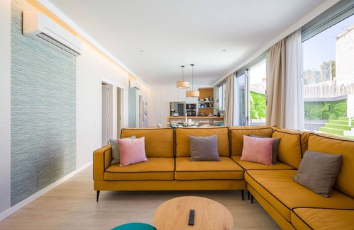 Escape to a luxurious holiday home featuring a private heated pool, expertly designed for an unforgettable getaway. With modern décor infused with tropical charm, this freshly built accommodation offers an elegant and welcoming atmosphere perfect for relaxation. Accommodating up to six guests, it includes a master bedroom with a king-size bed and en-suite bathroom, alongside two additional bedrooms with twin beds and a shared bath, all equipped with TVs for your entertainment. Step into the expansive living room-kitchen area, which boasts a Smart TV with international channels and a fully equipped kitchen highlighting state-of-the-art appliances, including a coffee machine and dishwasher. Outdoors, prepare to be impressed by the spacious terrace featuring a private heated pool with massage jets, two massage seats, and a countercurrent for swimming. The terrace is designed for sun-soaked lounging, complete with six comfortable sun loungers, an outdoor dining space, a gas barbecue, and a shower, all set against a backdrop of verdant artificial grass. Every detail is crafted for your comfort, with air-conditioned rooms and unlimited high-speed Wi-Fi throughout. Enjoy complimentary weekly cleaning for stays over eight nights, complete with linen changes. Additionally, a cot and highchair for young children are available on request at no extra charge. Please note that heating for the pool incurs an extra fee of €40 per day and requires prior notice. Located just 1 km from El Tablero for shopping and dining, and only 7 km from the stunning Maspalomas Beach, this tropical paradise is the perfect destination for a tranquil and rejuvenating vacation!