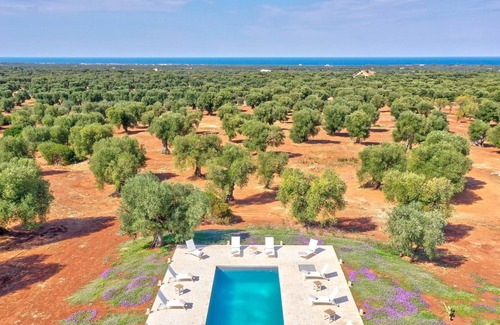 - a villa for rent with a swimming pool surrounded by 4 hectares of ancient olive trees, with a panoramic terrace overlooking the green expanse and from which you can admire Ostuni.