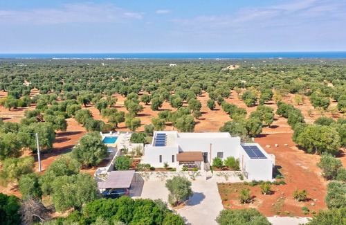 The villa for rent is only 3 km from the centre of Ostuni and 6 km from the wonderful beaches of Torre Pozzelle and Costa Merlata; Villa Orama Relais is immersed in the countryside of the Itria Valley, with a sea view and a panoramic view of the historic centre of Ostuni (from the terrace).