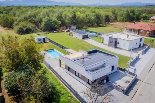 4.6 miles from Gradski Varazdin Stadium in Sračinec, Villa Joy With Pool and Hot Tub - Happy Rentals provides accommodations with access to a hot tub. The air-conditioned accommodation is 24 miles from Ptuj Golf Course. There's a seasonal outdoor pool and guests have access to free Wifi, free private parking, and an electric vehicle charging station. Providing a terrace and mountain views, the spacious apartment includes 2 bedrooms, a living room, flat-screen TV, an equipped kitchen, and 2 bathrooms with a hot tub and a bath. Towels and bed linen are provided in the apartment. The property has an outdoor dining area. Guests can also relax in the garden. Zagreb Franjo Tuđman Airport is 56 miles away.