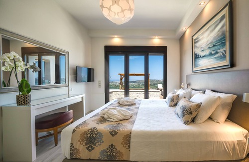 decorated bedrooms the main one includes an en suite bathroom and walk in closet. The main bedrooms all have the most breathtaking 360o panoramic view of ocean and Chania bay.
