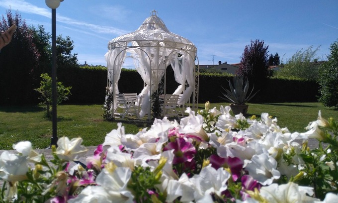 A private park of 2,000 square meters is the strong point of the residence. The park, including parking, is completely fenced and creates a lot of privacy on the property and becomes an extremely safe area for children. The pool of about 33 square meters and its sunbeds will be dedicated exclusively to you as the gazebos. A gazebo of 16 square meters is used as a relaxation area and shade for the pool area. The main gazebo of 30 sqm equipped with a large baroque sofa and a majestic travertine table where you can place 12 table seats, is located near the entrance of the house and near the brick barbecue.