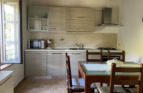 La Tinaia, with side access, living room with fully equipped kitchenette and single sofa bed, hallway, double bedroom and complete bathroom with shower in the toilet instead of the bidet.
