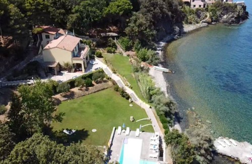Overlooking the Gulf of Procchio towards Marciana Marina, past the beaches of Paolina and Redinoce, the beach of Bagno Sprizze is an uncontaminated jewel, mostly frequented by residents and those arriving by sea. The structure that we offer to our guests is an exclusive proposal, which is proposed as one of the best in the catalog due to the uniqueness of its position, close to the sea, along the coast, with large well-kept gardens, an infinity pool on the gulf, and the 360° view of the gulf and its wonders. The residence is located directly on the sea, the pebble and rocky beach make the water fresh and crystal clear. It is inserted inside a private park and all three apartments enjoy an enchanting view, all capable of ensuring the best livability of the spaces, maximum tranquillity, for a holiday dedicated to rest of body and mind.