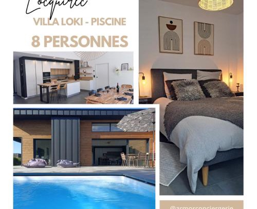 Providing a garden, Villa Loki - A 700m de la mer! features accommodations in Locquirec. Both free Wifi and parking on-site are available at the villa free of charge. Saint-Samson Golf Course is 19 miles from the villa and Saint-Thégonnec Parish Close is 20 miles away. This villa includes 4 bedrooms, a living room and a flat-screen TV, an equipped kitchen with a dining area, and 4 bathrooms with an a bath or shower and a washing machine. Guests can take in the views of the pool from the terrace, which also has outdoor furniture. For added privacy, the accommodation features a private entrance. In addition to a seasonal outdoor pool, Villa Loki - A 700m de la mer! also provides outdoor play equipment. Plage Du Port is 1.4 miles from the accommodation, while Plage des Sables Blancs is 1.6 miles away. Brest Bretagne Airport is 42 miles from the property.