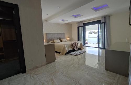 1.7 miles from Los Alamos Beach in Torremolinos, Villa lujo Costa del Sol con piscina-jacuzzi offers accommodations with access to a hot tub. This property offers a private pool, free Wifi, and free private parking. Staff on site can arrange a shuttle service. Opening onto a terrace with pool views, the spacious villa consists of 6 bedrooms. The air-conditioned villa also provides a flat-screen TV, a fully equipped kitchen with a dishwasher, a seating area, washing machine, and 3 bathrooms with a bidet, a bath, and a shower. The property has an outdoor dining area. There is an on-site bar. Sightseeing tours are available in the vicinity of the property. Guests can also relax in the garden. Puerto Marina Benalmadena is 4.7 miles from the villa, while Automobile and Fashion Museum is 6.1 miles from the property. Malaga Airport is 4.3 miles away, and the property offers a paid airport shuttle service.