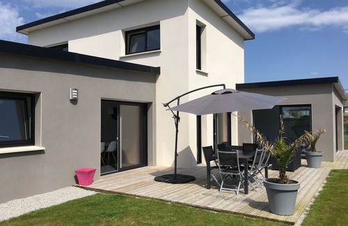 It is located in Plouescat in a quiet dead end 100 meters from the beach and coastal paths.