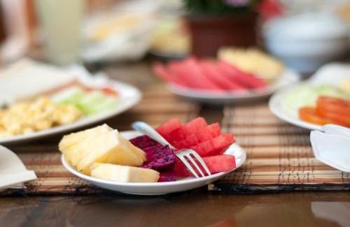 Villa Manayasa has an outdoor swimming pool, garden, a shared lounge and terrace in Lovina. Built in 2021, the property is within a 18-minute walk of Agung Beach. The property has a shared kitchen and room service for guests. At the hotel rooms have air conditioning, a seating area, a flat-screen TV with satellite channels, a safety deposit box and a private bathroom with a bidet, free toiletries and a hairdryer. Free WiFi is accessible to all guests, while certain rooms come with a balcony. The rooms have a closet. Breakfast is available, and includes American, Asian and vegetarian options. The area is popular for cycling, and bike rental is available at Villa Manayasa. Ngurah Rai International Airport is 55 miles from the property, and the property offers a paid airport shuttle service.