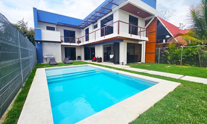 Guests can enjoy spacious living areas, a fully equipped kitchen, and outdoor spaces designed for relaxation and entertainment. Whether you're soaking in the pool, marveling at the volcano, or exploring nearby attractions like waterfalls and hot springs, this rental promises an unforgettable experience. Ideal for families, couples, or groups seeking a slice of paradise in Costa Rica.