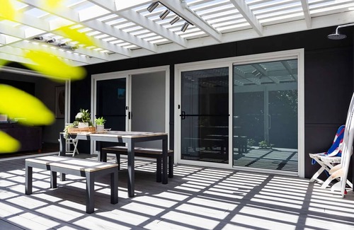 This three-bedroom beach retreat has everything you could need for a relaxing beach stay. Completely renovated and stylishly furnished, well-equipped kitchen, living area & large smart TV, reverse cycle air conditioning, wifi, fans in all bedroom excluding kids room, landscaped gardens at the front and a large sunny fenced back yard and only a 5 minute flat walk to leash free beach, so even your four-legged friend can holiday too.