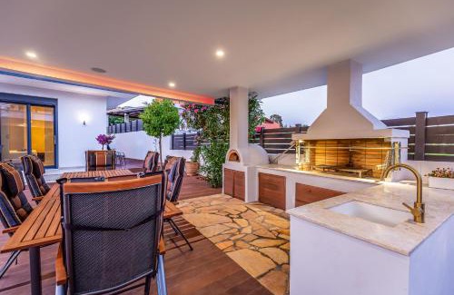 Featuring a seasonal outdoor swimming pool, Villa Marilena features accommodations in Corfu. Guests can benefit from a balcony and an outdoor fireplace. There's a sun terrace and guests have access to free Wifi, free private parking, and an electric vehicle charging station. The air-conditioned apartment consists of 3 bedrooms, a living room, a fully equipped kitchen with a dishwasher and a coffee machine, and 2 bathrooms with a walk-in shower and a hair dryer. Towels and bed linen are available in the apartment. The property has an outdoor dining area. During warmer months, you can make use of the barbecue facilities and eat on the private patio. A bicycle rental service is available at the apartment. Panagia Vlahernon Church is 4.8 miles from Villa Marilena, while Ionio University is 4.9 miles away. Corfu International Airport is 4.3 miles from the property, and the property offers a paid airport shuttle service.