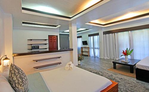Located in General Luna, a 3-minute walk from General Luna Beach, Villa Maya provides accommodations with an outdoor swimming pool, free private parking, a garden and a terrace. Among the facilities at this property are room service and a tour desk, along with free WiFi throughout the property. Guests can enjoy Mediterranean and Middle Eastern dishes at the restaurant or have a drink at the bar. All guest rooms in the resort are equipped with air conditioning, a seating area, a flat-screen TV with satellite channels, a safety deposit box and a private bathroom with a shower. All rooms are equipped with an electric tea pot, while certain rooms will provide you with a balcony and others also provide guests with sea views. Guest rooms will provide guests with a fridge. You can play table tennis and minigolf at this 4-star resort, and the area is popular for golfing and cycling. Guyam Island is 1.9 miles from Villa Maya, while Naked Island is 8 miles from the property. Sayak Airport is 19 miles away, and the property offers a paid airport shuttle service.