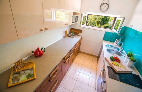 Surrounded by a lush Mediterranean garden, palm, olive and fig trees you will love the large patio surrounding the entire house overlooking the fisherman village of Maslinica. Offering a stress free atmosphere the accommodation is ideal for an escape from everyday life stressors and thus becomes an ideal place for families with children or couples. Take the time to re-connect with nature and peaceful environment. Salute the new day with the first morning coffee on the fully furnished outdoor lounge area.