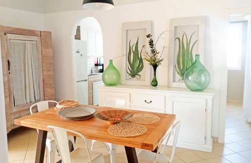 White walls, natural materials, stone-wall features and soft furnishings in sandy tones all beautifully reflect the villa's country/coast setting. The villa enjoys an open living space that leads into the kitchen with the option of dining indoors. There's also a comfy outside seating area just by the trullo. There really is little distinction between indoors and outdoors at Villa Minni.