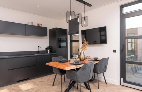 Kitchen:The modern kitchen is fully equipped with a fridge-freezer, hob with built-in extractor, combination microwave, dishwasher, kettle, and a L’OR Barista capsule coffee machine—everything you need for a carefree and enjoyable stay.