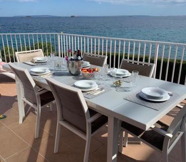 A 18-minute walk from Ibiza Port in Ibiza Town, Villa Nieves provides accommodations with access to a solarium. This beachfront property offers access to a balcony, free private parking, and free Wifi. The property is a 4-minute walk from Figueretes Beach and within 500 yards of the city center. Providing a terrace and sea views, the spacious vacation home includes 4 bedrooms, a living room, satellite flat-screen TV, an equipped kitchen, and 4 bathrooms with a bidet and a bath. Towels and bed linen are provided in the vacation home. This vacation home is allergy-free and soundproof. Guests can make the most of the warm weather with the property's barbecue facilities. Guests can relax in the garden at the property. Marina Botafoch is 1.9 miles from the vacation home, while San Antonio Bus Station is 10 miles away. Ibiza Airport is 3.1 miles from the property.