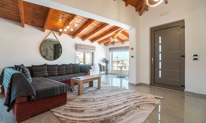 The villa Nikolaos 2, which is situated in Rhodes, overlooks the Aegean Sea. The 100 m² property consists of a living room with a sofa bed for 2 people, a well-equipped kitchen, 3 bedrooms and 1 bathroom and can therefore accommodate 6 people. Additional amenities include Wi-Fi, a smart TV with streaming services, air conditioning as well as a washing machine.