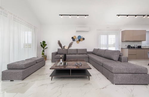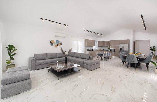 Villa Nikoli has 7 incredible bedrooms brightly decorated. All bedrooms are fully airconditioned .On the first floor there are 4 bedrooms with double bed and 3 with single.Also, there are 5 bathrooms, one with a bathtub for your ultimate relaxation, and 4 with a stylish shower. Guests will find a spacy open plan kitchen fully equipped for any meal preparation by the seating area In the same space you’ll find the large living room with one single sofa bed and smart TV. On the second floor you will find a master bedroom with a double bed and ensuite bathroom with shower. Two bedrooms with 2 single beds and one ensuite bathroom with shower , there’s also one extra bathroom with shower . You will find a fully equipped kitchen, suitable for any meal preparation along with comfortable seating areas. In addition, there’s a second cozy and welcoming living area . There’s a free Wi-Fi access throughout the property. Outdoors, guests will find their private swimming pool with its sunbeds and parasols so you can work on your tan under the rays of the Aegean sun. The surrounding area is pretty inviting, there’s a seating area and BBQ facilities so you can enjoy a gathering with your loved ones. Villa Nikoli promises that your holiday in Rhodes will surely be an unforgettable experience, leaving you only with the wish to come back for more.