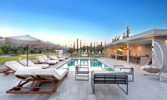 Villa Nikoli is an exceptional villa for rent ideally located at Kolympia. The villa has a spectacular outdoor area with a private swimming pool. The distance to the crystal-clear waters of the beach is only a 10-minute drive away. Villa Nikoli conveniently accommodates up to 14 guests and promises unique holidays in Rhodes.
