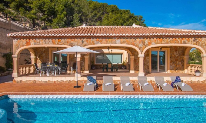Enjoy an unforgettable holiday in this splendid villa with private pool, located in beautiful Calpe, on the Costa Blanca. Designed to comfortably sleep 8 people, this four-bedroom, three-bathroom property offers exceptional luxury, all on a single floor. Comfort is guaranteed with air conditioning available in both the spacious living room and all bedrooms.