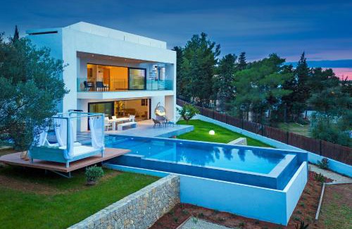 Food & DrinkTea/Coffee makerBathroomBathtub or shower, Bathtub, Hairdryer, Toilet, Private bathroom, Conditioner, Body soap, Free toiletries, Towels, Toilet paper, Shampoo, Guest bathroom, ShowerMedia & TechnologyFlat-screen TV, TVGeneralAir conditioning, Fire extinguisher, Hardwood or parquet floors, Private entrance, Key access, Tile/Marble floor, Iron, Trash cansOutdoorsPrivate pool, Outdoor furniture, Outdoor dining area, Barbecue, Terrace, BalconyKitchenWine glasses, Cleaning products, Dryer, Stovetop, Dishwasher, Kitchenware, Electric kettle, Oven, Toaster, Coffee machine, Dining table, Kitchen, Refrigerator, Washing machineLiving AreaDining area, Sitting areaViewPool view, Mountain view, View, Garden view, Sea viewBedroomLinens, Childrens' cribs, Wardrobe or closetBuilding CharacteristicsDetachedRoom AmenitiesHypoallergenic pillow, Socket near the bed, Drying rack for clothing, Non-feather pillowEntertainment & Family ServicesBaby safety gatesPool and SpaSaltwater pool, Pool with a view, Infinity Pool, Pool towels |