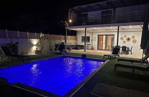 Located in Bastátika, Corfu, Olivia Estate South Corfu offers a 154 sqm villa that comfortably accommodates up to 8 guests. You will find 4 bedrooms and 3 bathrooms with hair dryers, along with a living area and a well-equipped private kitchen with refrigerator. The villa features private air conditioning, TV, WiFi, washing machine, and a dedicated workspace. A baby bed is available for families with young children.