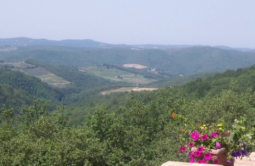 Podere Scopeto overlooks woods, vineyards and the medieval towns of Radda and Castellina. The nearest town is Gaiole (15 min) in the triangle of Siena, Florence and Arezzo. It is in the middle of the Gallo Nero classic wine region with Brolio, Castello Meleto, Coltibuono on your doorstep. We have a large saltwater pool (5m x 14 m) with spacious sun terraces and pergolas which offer our guests boyant relaxation, but for the more energetic there are miles of woods and hills to walk in beyond the 30 privately owned acres surrounding the house. It has a huge BBQ with enough chairs and tables to seat 12-18 comfortably on the three terraces. More secluded hammocks and picnic places are dotted around the property under the shade of our olives and sweet chestnuts. We have reliable crystal clear water from our own well and faultless heating and plumbing system. Our bathrooms are modern and work perfectly and every bed- and bathroom has at least one anti-mosquito screen in a window. 2 fireplaces cheer our winter visitors. From the main road you drive 2 and a half km through the woods on an un-tarmaced road which is not suitable for low-slung vehicles, caravans or bikes but fine for normal cars driven slowly. We are happy to let you stay for the annual 'Eroica' traditional bike-race in October though, which takes place every year in Gaiole.