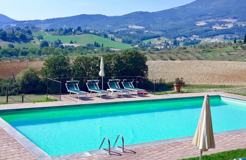 In our 180 hectar farm, only few hundred meters from Villa Palazzo Bello, we own another farmhouse, named "Villa Chieteno". that can host 20 persons or more with large garden and swimming pool, ideal for big groups. The villa is situated on the top of a hill, surrounded by a beautiful park where you can eat, relax or play. The swimming-pool is in a very panoramic position.