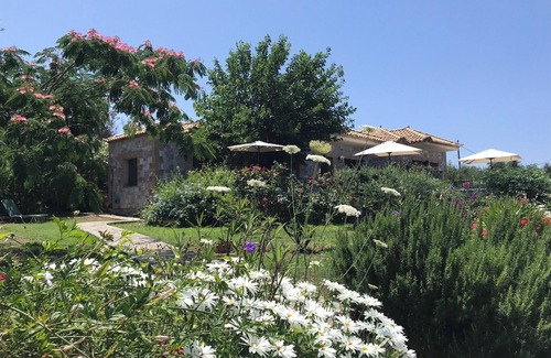 Villa Pefnos is a traditional stone villa set in it's own beautiful olive grove and lovely gardens on the outskirts of the picturesque fishing village of Agios Dimitrios, about 5 km south of Stoupa. This lovely villa with two apartments, offers absolute peace and quiet and is the ideal starting point for lots of holiday activities. The large terraces on all sides of the villa invite you to relax and sunbathe. The two apartments are built slightly offset and have separate entrances, so that our guests can enjoy complete privacy. The olive grove and gardens are lovely and the views of the sea are unparalleled. There is plenty of space for parking. We also offer free bikes for anyone wishing to explore.