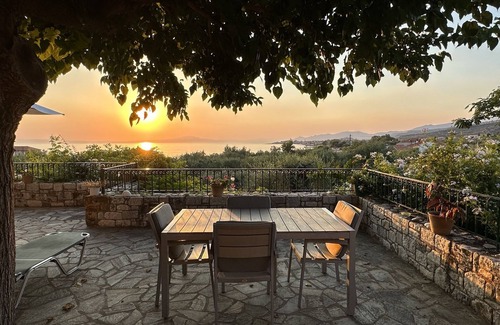 Sit on the terrace of our house on the west coast of the Mani and experience the tranquillity of this magical place. Enjoy the view of the deep blue of the Mediterranean Sea and the mighty mountain slopes of the Taygetos. Watch as the clouds drift over the turreted villages of the southern Peloponnese and as the sun sets over the Messinian Gulf.