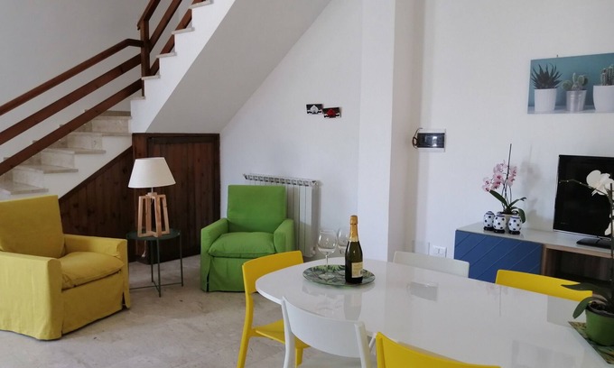 The structure, which has been recently renovated, consists of a large and bright living room with a sofa bed, two bedrooms, a kitchen and complete services, a veranda with barbecue and a private patio, with the possibility of parking in the external courtyard.
