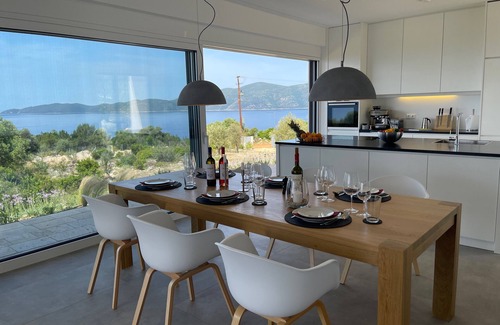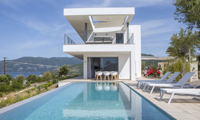 Villa Pinea is a stunning, modern villa perched at the southern tip of Lefkada, offering an unobstructed, panoramic 180-degree view of the Mediterranean Sea and the nearby islands of Ithaca and Kefalonia. Nestled in a peaceful and natural location, the villa is far from the crowds, offering the ultimate tranquility and privacy for those seeking a relaxing escape.