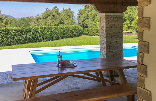 Single-family house "Villa Portobello Green", 2 storeys. In the hamlet Šumber 9 km from the centre of Labin, 15 km from the centre of Rabac, 15 km from the sea, in the countryside. Private: property 2'000 m2 with lawn and wildlife garden, swimming pool angular (8 x 4 m, depth 140 cm, seasonal availability: 01.May. - 31.Oct.). Terrace, barbecue, pool maintenance by the owner/gardener. In the house: internet access, washing machine, tumble dryer. Parking (for 4 cars) at the house on the premises. Shop 5 km, supermarket 9 km, restaurant 7 km, bus stop 9 km, pebble beach 15 km. Please note: airfield 48 km from the property.