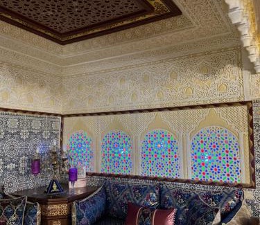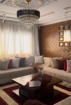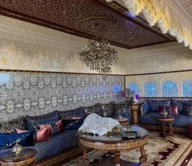 Villa pour les petits fêtes offers accommodations in Meknès, 18 miles from Volubilis. Both free Wifi and parking on-site are available at the villa free of charge. Guests can use a terrace. The villa includes 1 bedroom and a living room with a flat-screen TV. The accommodation is non-smoking. The nearest airport is Fès–Saïs Airport, 45 miles from Villa pour les petits fêtes.