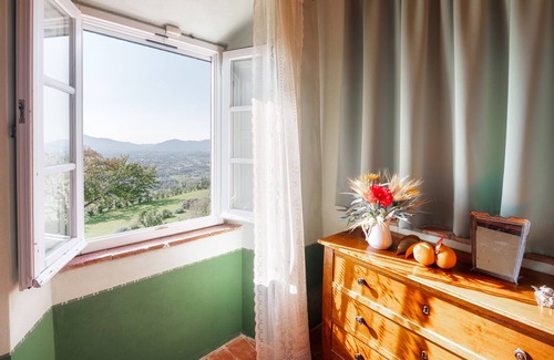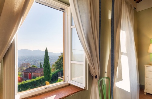 RECEPTIVE STRUCTURE. Villa Primo Sole is located just a few kilometres from the romantic town of Lucca, endowing the property with a privileged position. Immersed in an enchanting hilly setting typical of the Serchio valley, it revels in a peaceful and wonderful atmosphere, enriched by a splendid panorama and enchanting views. Villa Primo Sole was once a hunting lodge and has been restored to new life by the skilful and meticulous renovation work of the owners. Classic materials of Tuscan tradition such as cypress wood beams, pietra serena and terracotta tiles combine with simple, elegant furnishings to create a unique atmosphere and lasting memories for their guests. The property has three floors with large common areas and is ideal for large groups, as it gives everyone independent space within the vast property. All the bedrooms have air conditioning and WI-FI, guaranteeing you a perfect relaxing stay. At your disposal is a wonderful Tuscan-style kitchen ready to introduce you to the delicious Italian culinary tradition and have you feel the warmth and familiarity of this place. Within the large colourful garden are elegant living areas as well as the wonderful panoramic swimming pool, the gem of the property. Also in the garden is a barbecue and a large table under the shade of the wisteria-covered pergola, where you can enjoy delicious meals surrounded by the beautiful nature of Tuscany. The strategic position of the villa is certainly a fundamental feature for those who wish to visit the splendours of Tuscany; the proximity to Lucca and the motorway exit allow you to get easily and quickly to historic borghi and towns such as Florence, Pisa, Montecatini Terme , Montecarlo di Lucca, Collodi and the nearby golden beaches of Versilia with elegant Forte dei Marmi. In the vicinity of the property are numerous historic villas, including Villa Reale, the old residence of Elisa Bonaparte, which can still be visited today along with its wonderful garden, renowned for being one of the most beautiful in Italy.