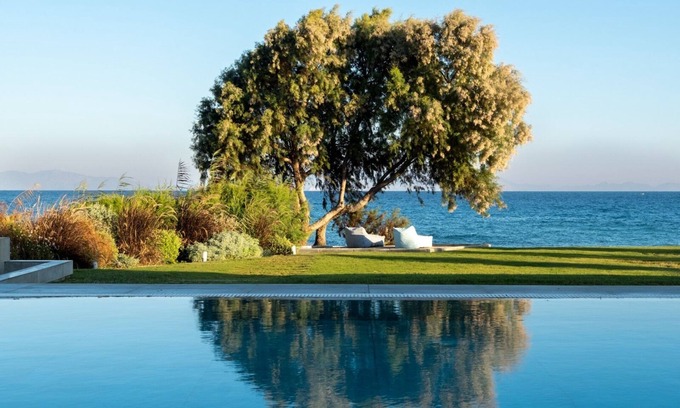 Villa Ramann is a new luxury beachfront holiday villa with a breathtaking, and picturesque view of the sea. Situated on the beach and surrounded by green fields and vineyards, the villa is located on the outskirts of the village of Fanes on the island of Rhodes, with a fantastic panoramic view of the Greek island of Symi and the Aegean Sea.
